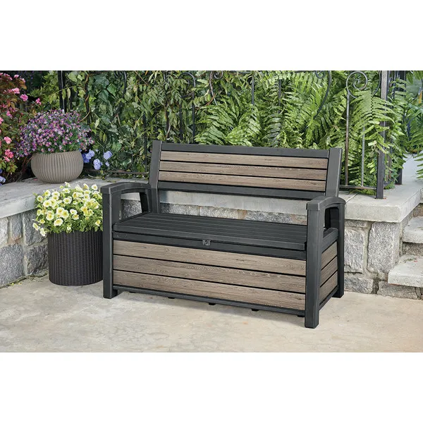 Bemutatjuk az új, egyedülálló Deco kerti padunkat, amely eleganciát és funkcionalitást ötvöz, így tökéletes kiegészítője lehet bármely kertnek. Tartós, időjárásálló műanyagból készült, ezért ideális választás szabadtéri használatra. Tágas tárolóhelyet kínál, miközben kényelmes ülőhelyet biztosít két felnőtt számára – így rendben tarthatja kertjét, és számos tárgyat tárolhat száraz és jól szellőző környezetben. A fa hatású panelekből álló, kifinomult kialakítás eleganciát visz bármilyen térbe, a zárható funkció pedig gondoskodik a tárolt tárgyak biztonságáról. A DecoCoat technológiának köszönhetően a Deco kerti pad modern és stílusos kiegészítője lehet bármely kertnek.