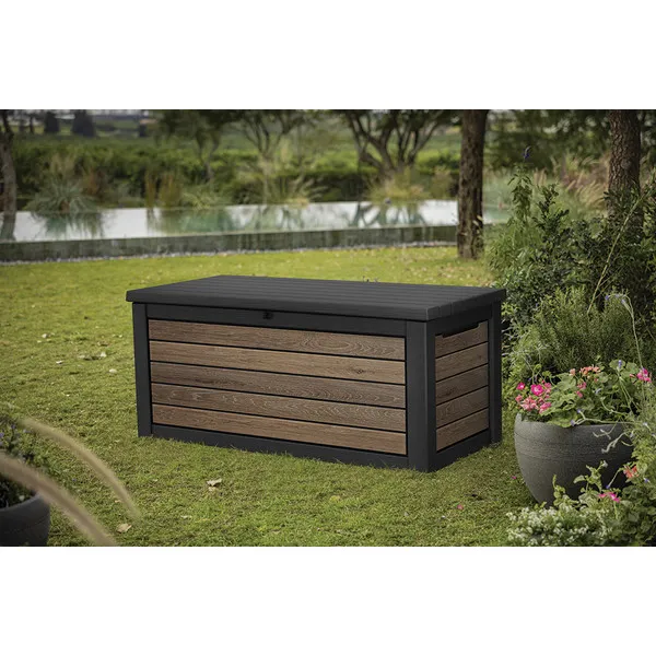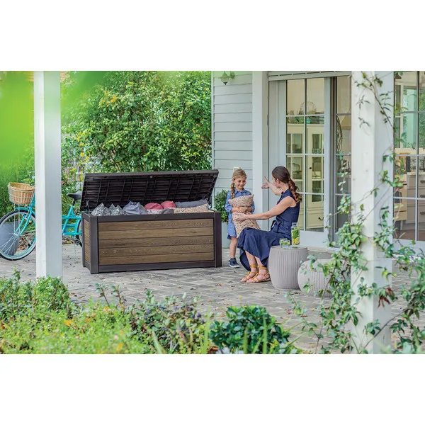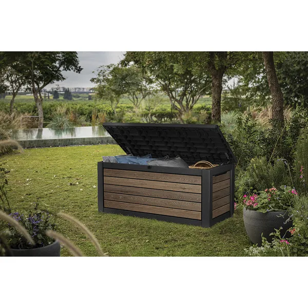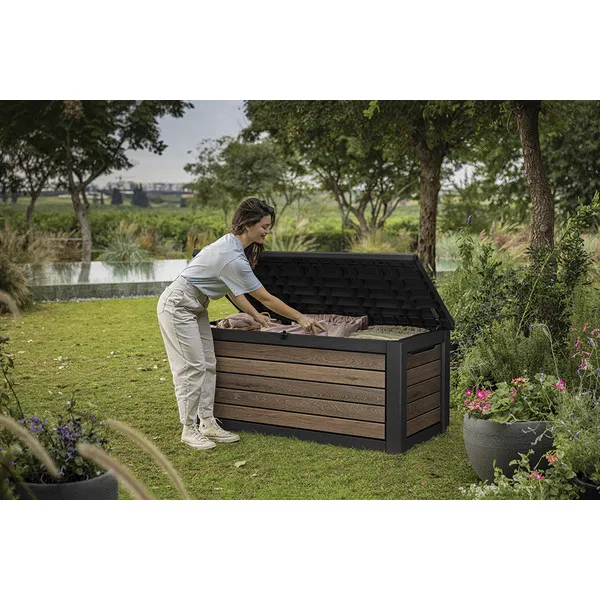 A kényelmes dugattyús rendszer zökkenőmentes nyitást és zárást biztosít, míg a zárható kialakítás garantálja a benne tárolt értékek biztonságát. A 630 literes belső tér bőséges helyet kínál kerti párnák, kiegészítők vagy egyéb tárgyak tárolására, hogy kerted mindig rendezett legyen. Az innovatív DecoCoat™ anyag famintás dizájnja eleganciát és természetes hatást kölcsönöz, miközben megakadályozza a rozsdásodást, fakulást vagy hámlást. Ráadásul a láda kényelmes ülőalkalmatosságként is szolgálhat, így nemcsak praktikus, hanem stílusos kiegészítője is a kertednek.