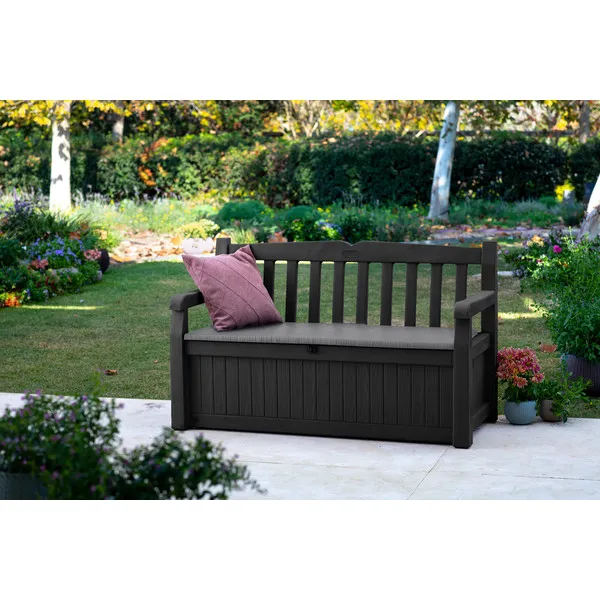 Stílusos pad vagy funkcionális tároló? A legjobb 2 az 1-ben! Az Eden Garden Bench ötletes megoldás mindazok számára, akik elegáns, de praktikus módon szeretnék kialakítani a kertjüket. A nagy kapacitásának köszönhetően nem csak a pokrócok és a párnák, de még a szabadidő eszközök is elférnek a tárolóban. Mindemellett a természetes fára emlékeztető felület tökéletesen kiemeli a kert szépségét és stílusát.