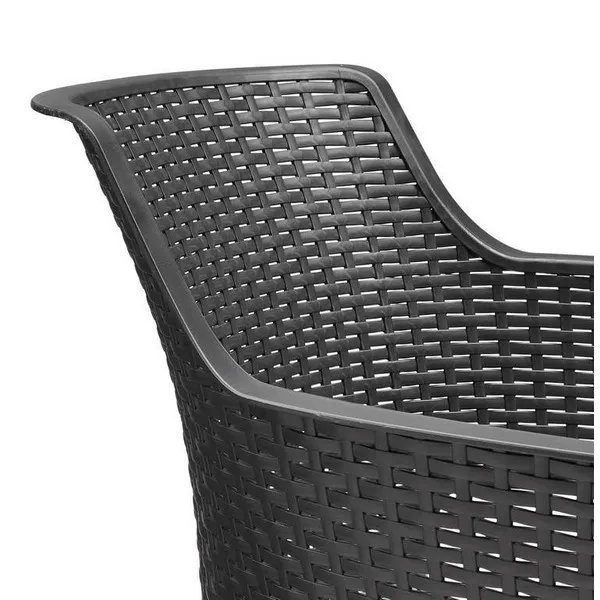 Az Eva egy kivételesen kényelmes szék, korszerű külsővel. A profilozott támla és ülőhely, a puha, kerekített könyöklő vonala kétségtelenül előnyei ennek a terméknek. A sima vesszőfonásos minta korszerű textúrájú, könnyen tisztítható és a székek egymásba helyezhetőek. Ideális bútorok a házba és a kertbe.