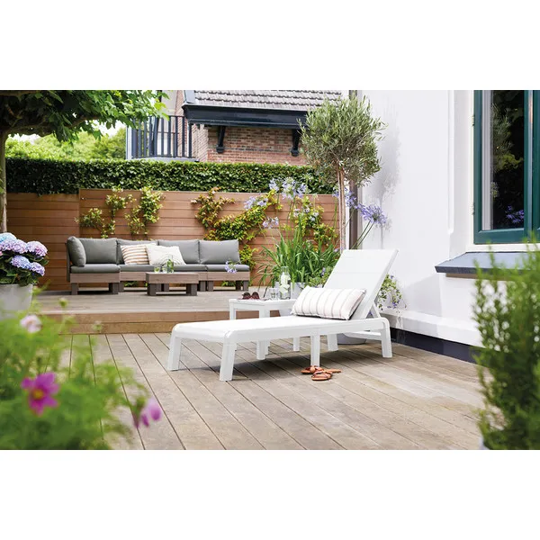 A FORMENTERA napozóágy a tökéletes választás, ha páratlan eleganciára és maximális kényelemre vágysz. Stílusos kialakítása és praktikus funkciói révén bármilyen kültéri környezetben – kertben, teraszon vagy akár egy medence mellett – ideális társad lesz. A napozóágy négy különböző fekvőhelyzetbe állítható, így mindig megtalálhatod a számodra legkényelmesebb pozíciót. Széles lécekkel és elegáns fa hatású felülettel rendelkezik, amely exkluzív megjelenést kölcsönöz kültéri környezetednek.