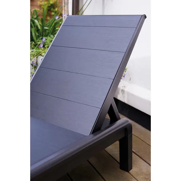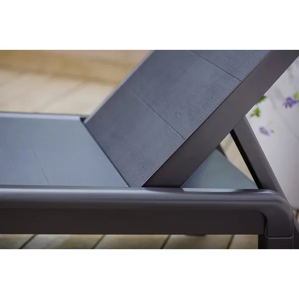 A FORMENTERA napozóágy a tökéletes választás, ha páratlan eleganciára és maximális kényelemre vágysz. Stílusos kialakítása és praktikus funkciói révén bármilyen kültéri környezetben – kertben, teraszon vagy akár egy medence mellett – ideális társad lesz. A napozóágy négy különböző fekvőhelyzetbe állítható, így mindig megtalálhatod a számodra legkényelmesebb pozíciót. Széles lécekkel és elegáns fa hatású felülettel rendelkezik, amely exkluzív megjelenést kölcsönöz kültéri környezetednek.