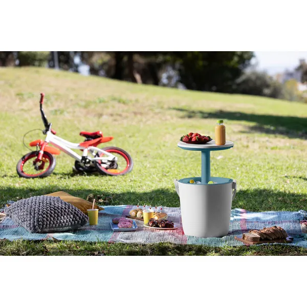 A Go Bar egy asztal funkcióval is rendelkező kerti hűtőláda… Vagy fordítva? A termék anyagának köszönhetően egy kevés jég segítségével még a legforróbb napokon is hidegen tartja az italokat, kinyitva pedig asztalként is funkcionál. A fogantyú megkönnyíti a mozgatásban, így ideális kiegészítő lehet a strandra, egy parkban megszervezett piknikre vagy egy baráti találkozóra. Könnyen tisztítható, ellenáll az időjárás viszontagságainak és az UV sugárzásnak.