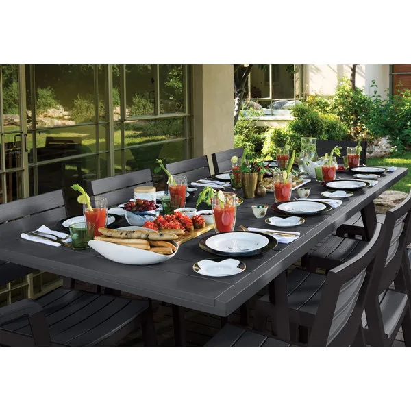 A Harmony Extendable egy kinyitható asztal, különleges feladatokra. Termékajánlatunk legnagyobb asztala időtálló stílussal és maximális használati kényelemmel büszkélkedik. Természetes faanyagra emlékeztető kivételes felületkialakítás jellemzi. A bútor ideálisan kitölti a kert vagy a terasz nagyobb tereit, lehetővé téve nagyobb családi összejövetelek vagy baráti találkozók szervezését. A széles asztallap 12 fő kényelmes fogadására alkalmas. A terméket magas tartósság jellemzi, továbbá ellenáll az időjárás viszontagságainak és az UV sugárzásnak is. Nagyon egyszerű összeszerelni és könnyű tisztán tartani.