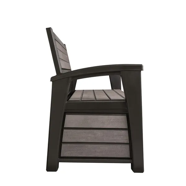 A Hudson egyben egy 2 személyes pad és funkcionális tároló, amely megtévesztően hasonlít a természetes fából gyártott tárolóhoz. A termék ellenáll az időjárás viszontagságainak, anyagának köszönhetően pedig könnyen tisztítható.