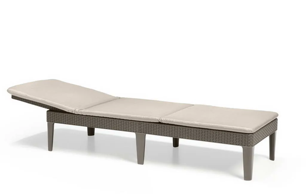 A funkcionális Jaipur nyugágy természetes rattanra emlékeztető felületkialakítással mindig kényelmes pihenést biztosít. Átgondolt szerkezetének köszönhetően a nyugágy összecsukható egy kisebb poggyász méreteire. A 4 pozícióban dönthető háttámla tovább növeli a termék kényelmét. Tisztítása egyszerű, elég hozzá egy mosószeres vízbe áztatott puha törlőkendő. Ellenáll a kedvezőtlen időjárási tényezők hatásának, valamint az UV sugárzásnak. A csomag tartalmazza a kényelmes párnákat is.
