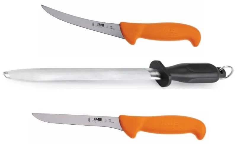 A JMB kések kivétel nélkül svéd Sandvik 14C28N acélból készülnek, mely a legfejlettebb hightech késacél magas nitrogéntartalommal. Ideálisan finom és homogén szerkezetének köszönhetõen ez az acélfajta nagy keménységet, kiváló éltartást és jó korrózióállóságot garantál! A fogantyú csúszásmentes és megfelel az európai higiéniai és élelmiszer-biztonsági szabványoknak. (JMB)
