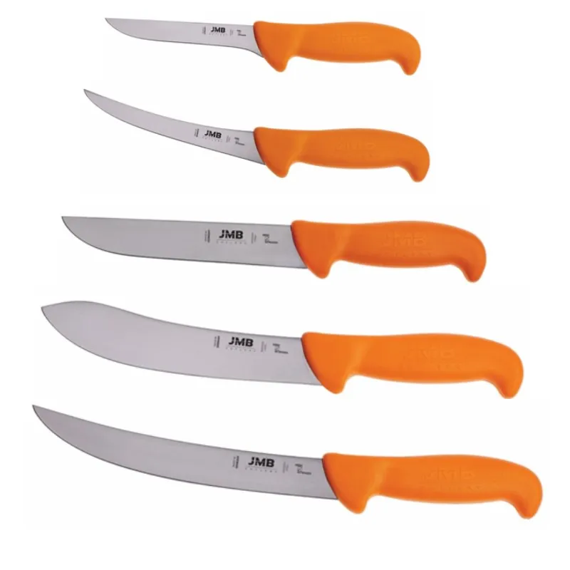 A JMB kések kivétel nélkül svéd Sandvik 14C28N acélból készülnek, mely a legfejlettebb high-tech késacél magas nitrogéntartalommal. Ideálisan finom és homogén szerkezetének köszönhetõen ez az acélfajta nagy keménységet, kiváló éltartást és jó korrózióállóságot garantál! A fogantyú csúszásmentes és megfelel az európai higiéniai és élelmiszer-biztonsági szabványoknak.