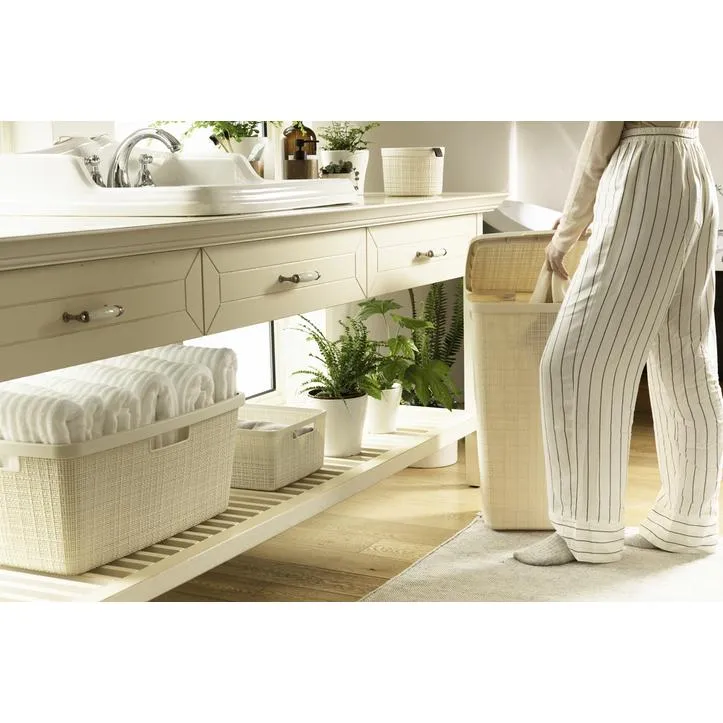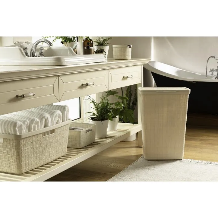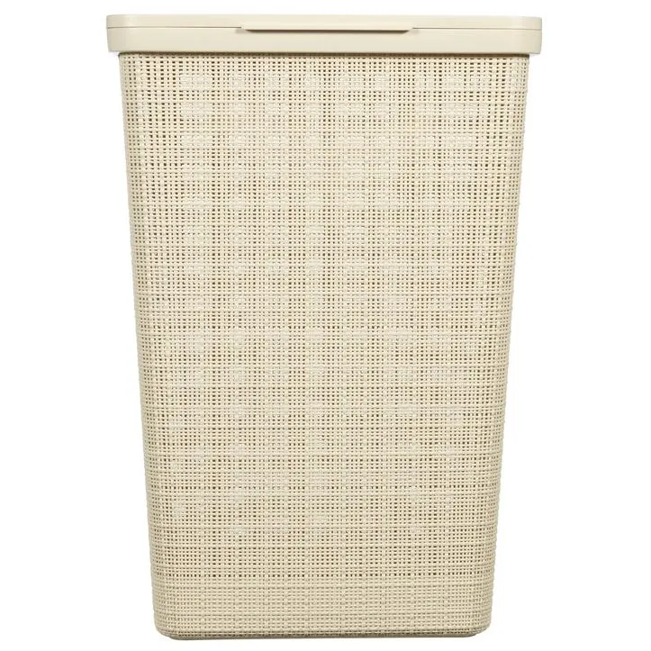 Az 58L-es Jute szennyestartó természetes, kézzel készített textíliumokból merített ihletet, így bármely hálószobában, fürdőszobában vagy háztartási helyiségben gyönyörűen mutat. Kényelmesen hordozható a 2 fogantyúval és a nagy nyílással ellátott fedélen keresztül pedig egyszerűen tehetők bele és vehetők ki belőle a szennyes ruhák. Ez a szennyestartó nemcsak szép, hanem fenntartható is, mivel minimum 70%-ban újrahasznosított anyagból készült.