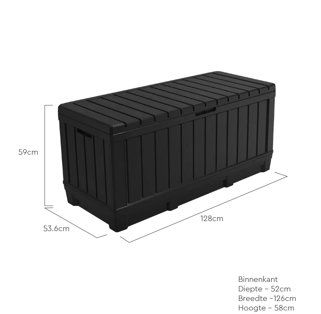 A 350 L-es Kentwood láda kettős funkcióval rendelkezik: egyszerre tároló és ülőhely 2 személy részére. Ideális megoldást nyújt a kerti felszerelések és kiegészítők, párnák, szőnyegek és kerti gyermekjátékok tárolására. A legjobb minőségű műanyagból készült láda hatékonyan védi a benne tárolt tárgyakat a nedvességtől, a szennyeződéstől és az UV sugárzástól. Könnyen tisztítható és egyszerűen összeszerelhető termék.
