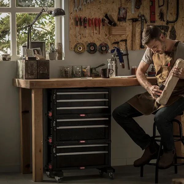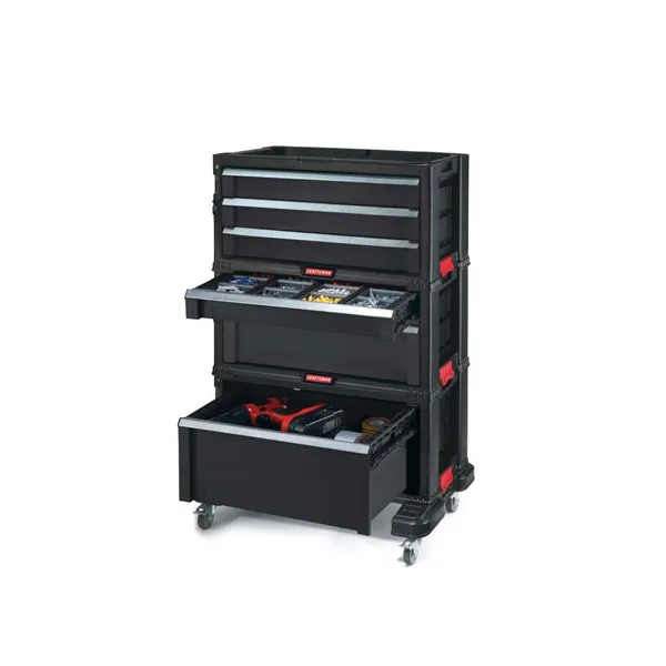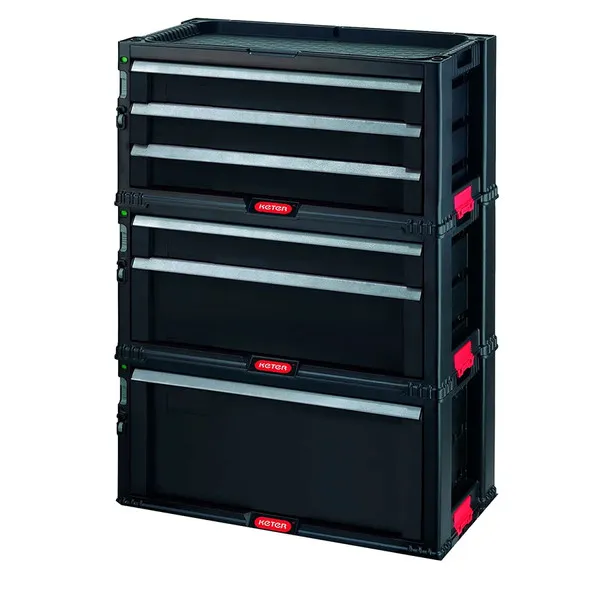 Praktikus, moduláris tárolási megoldás a műhelybe. Ez a 6 fiókos tároló minőségi anyagból készült, rengeteg szerszám befogadására képes. Rendszerezd és tárold a kisebb alkatrészeket a 4 vékonyabb fiókban, melyekben kivehető rendszerezők is helyet kaptak, vagy válaszd a nagyobb, esetleg az extra nagy fiókot a méretesebb szerszámoknak. Forgó kerekei segítségével könnyedén mozgatható a műhelyben, kialakításának köszönhetően pedig extra tároló is kapcsolható hozzá.