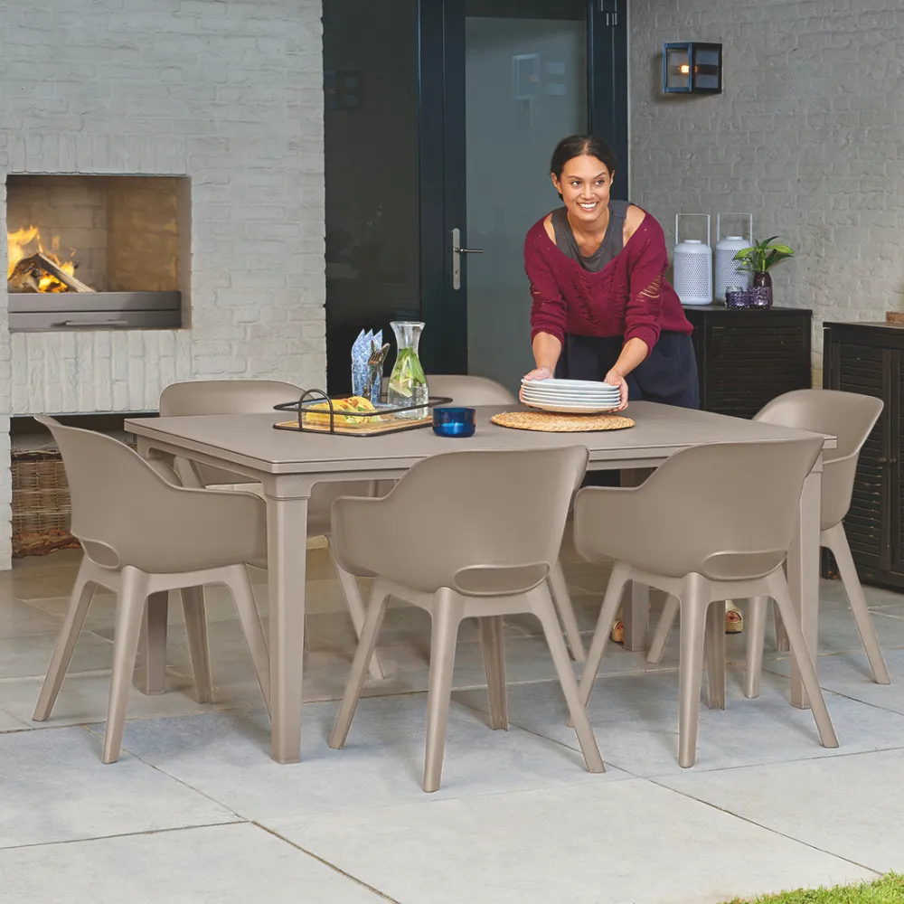 Az Akola székek jellegzetes alakjuknak, lekerekített háttámlájuknak és kartámaszuknak köszönhetően a modern dizájnon kívül a kényelmes használatot biztosítanak. A székeket tartósság jellemzi, ellenállnak a sérüléseknek, az időjárás viszontagságainak és az UV sugárzásnak. Tisztításuk egyszerű, elég hozzá egy mosószeres vízbe áztatott puha törlőkendő. A csomag 2 db Akola széket tartalmaz.