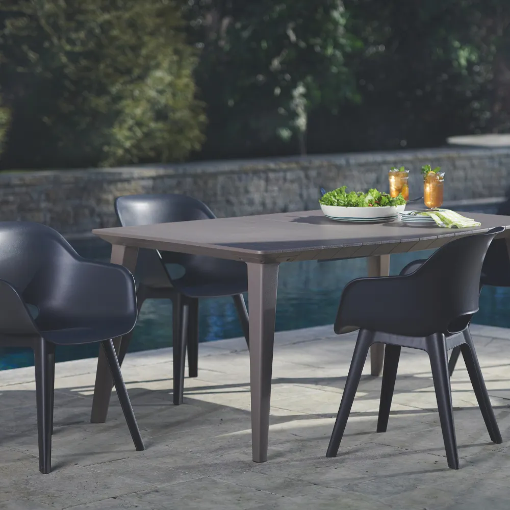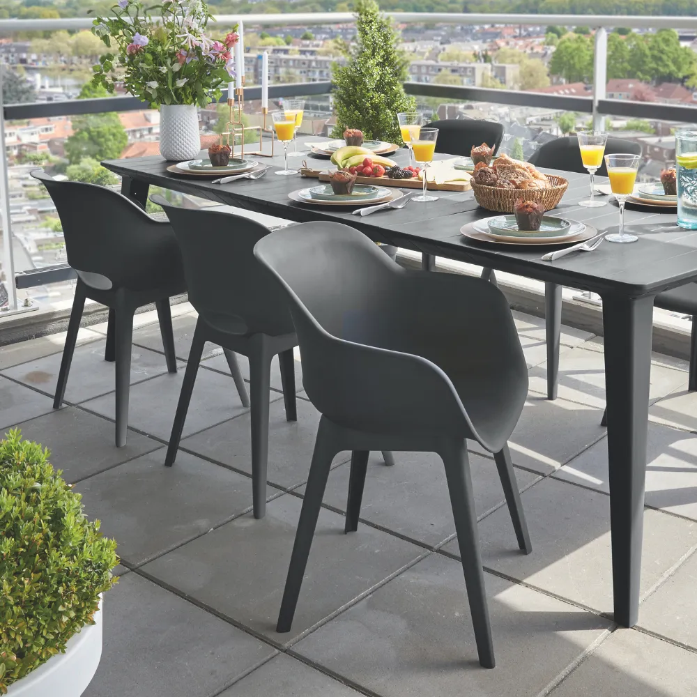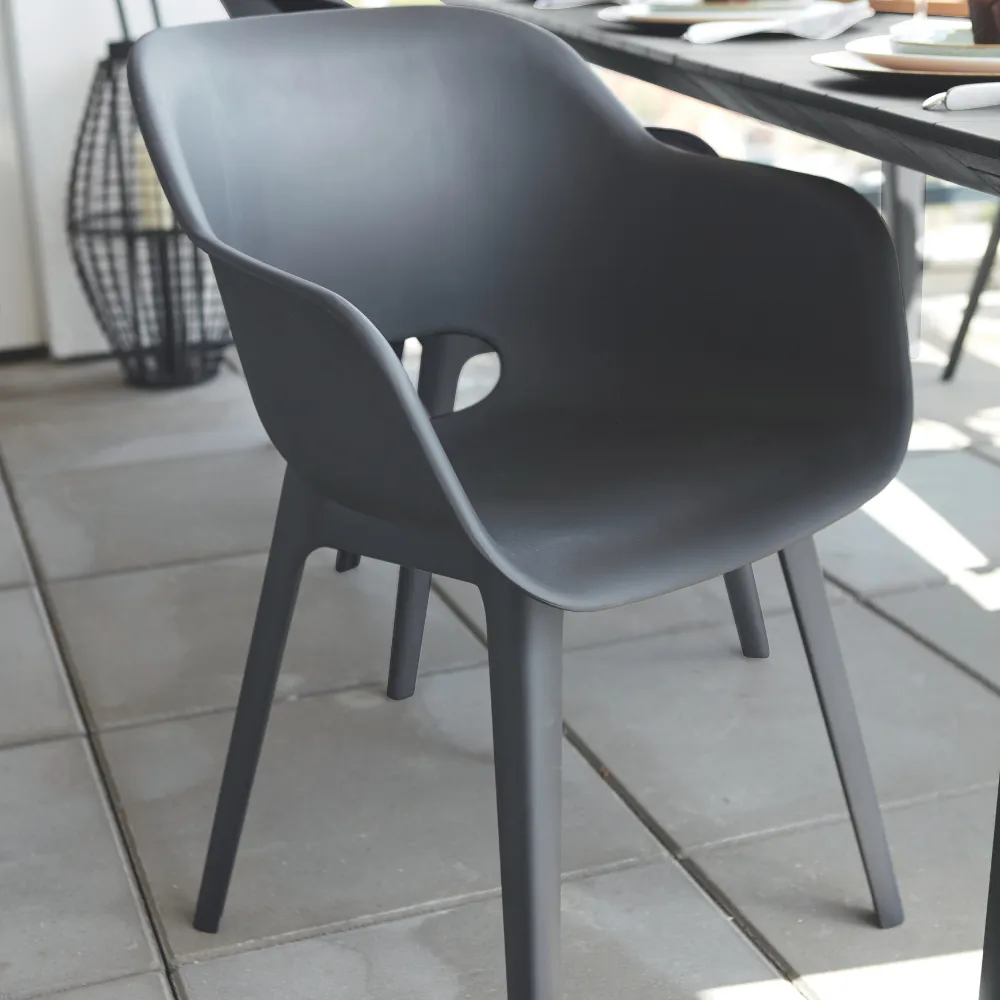 Az Akola székek jellegzetes alakjuknak, lekerekített háttámlájuknak és kartámaszuknak köszönhetően a modern dizájnon kívül a kényelmes használatot biztosítanak. A székeket tartósság jellemzi, ellenállnak a sérüléseknek, az időjárás viszontagságainak és az UV sugárzásnak. Tisztításuk egyszerű, elég hozzá egy mosószeres vízbe áztatott puha törlőkendő. A csomag 2 db Akola széket tartalmaz.