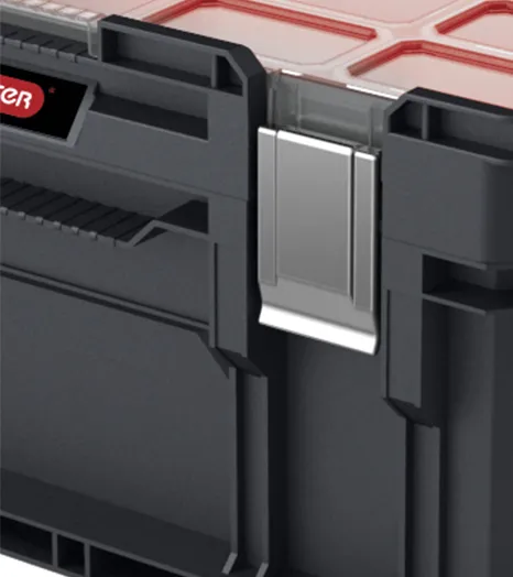 Tökéletes választás profik és hobbi-barkácsolók számára egyaránt, a Connect termékcsalád Cantilever 22″ rendszerezője egy rendkívül funkcionális termék modern megjelenéssel. A tágas alsó rész közepes és nagyobb méretű szerszámok tárolására, a felső, kivehető rekeszekkel rendelkező rész pedig kisebb alkatrészeknek lett kialakítva. A termék biztonságosan zárható, a felső rendszerező nyitásakor is zárva marad az alsó rész. A hátsó tartólábaknak köszönhetően mindig, még nyitott állapotban is stabilan áll. Nagy és kényelmes fogantyújának köszönhetően egyszerűen szállítható, a Connect termékcsalád többi termékével kompatibilis, azokkal összekapcsolható.