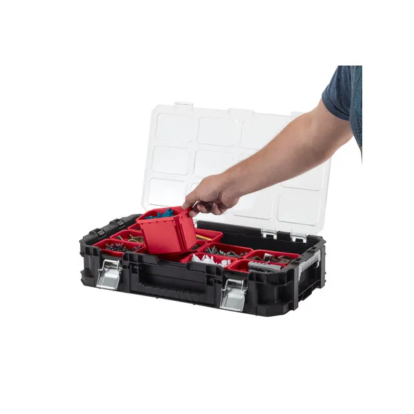 Kompakt és könnyű kivitelével, valamint oldalsó fogantyúival a Connect rendszerező úgy lett kialakítva, hogy a termékcsalád többi tagjához rögzítve és azokról lecsatlakoztatva is egyszerűen szállítható legyen. Az apró alkatrészek tárolásához kivehető, különböző méretű rekeszekkel rendelkezik. Az átlátszó polikarbonát fedelének köszönhetően a benne tárolt tárgyak folyamatosan láthatóak maradnak. Biztonságos zárral rendelkezik, így a szerszámok és apró alkatrészek biztosan nem fognak kiesni!