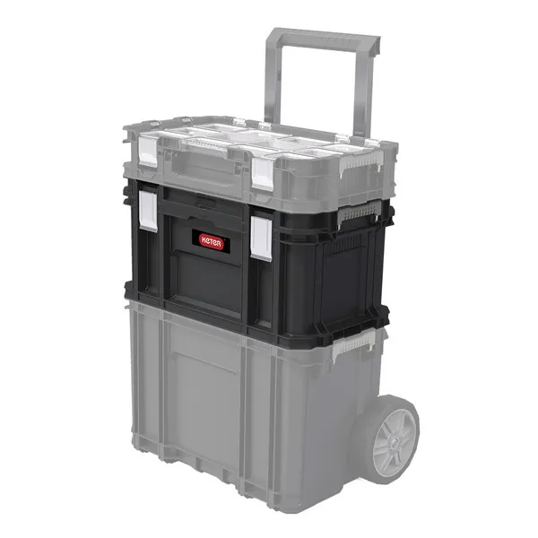 Minden sikeres barkácsoló tudja, hogy a szerszámokat könnyen elérhető, ideális méretű rekeszekben érdemes tárolni. A Connect szerszámosláda nagy teherbírásával és testreszabhatóságával tökéletes megoldást nyújt erre. A nagyobb szerszámok a tágas, fő rekeszben kaphatnak helyet, a kisebbeknek pedig tökéletes a kivehető szerszámos tálca. A Connect gurulós szetthez csatlakoztatva rendkívül egyszerű a többi szerszámmal együtt szállítani.