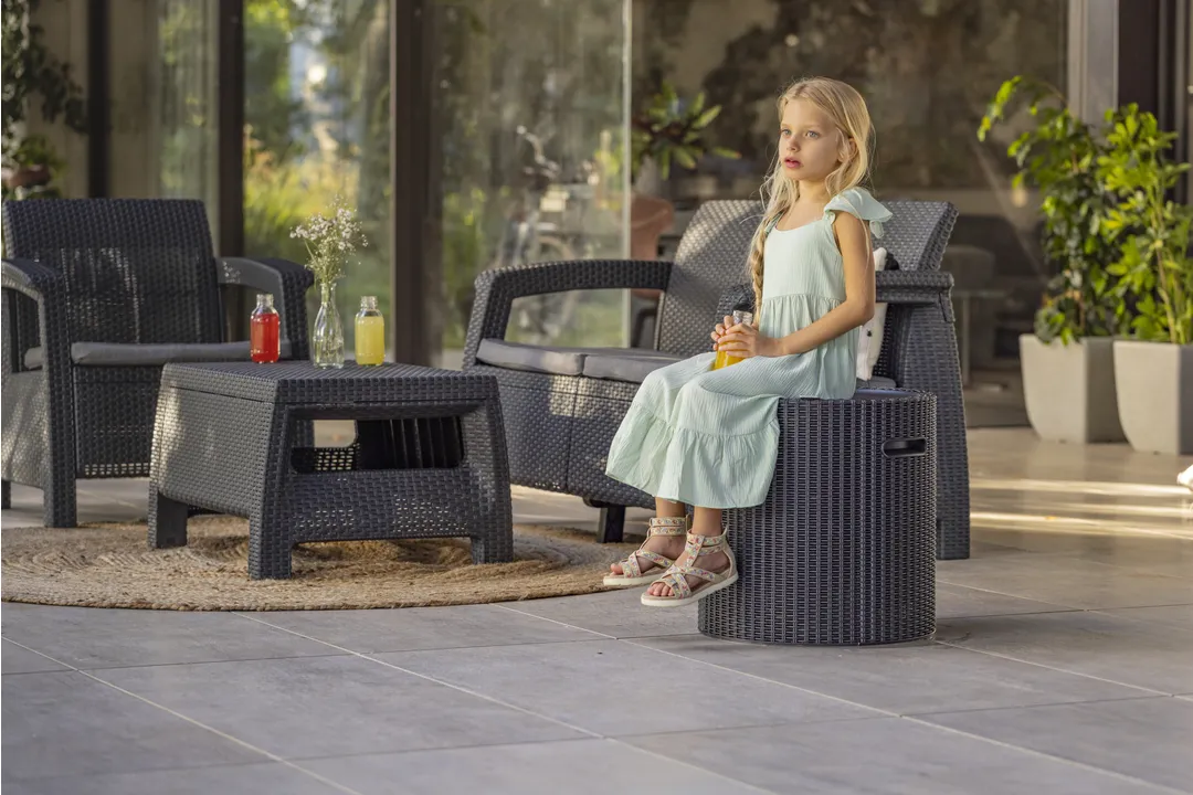 A Cool szék egy rendkívül funkcionális és kézreálló dohányzóasztal tároló funkcióval, fedelére párnát helyezve pedig ülőhelyként is ideális. Ellenáll a kedvezőtlen időjárási viszonyoknak és az UV sugárzásnak, könnyű tisztán tartani.