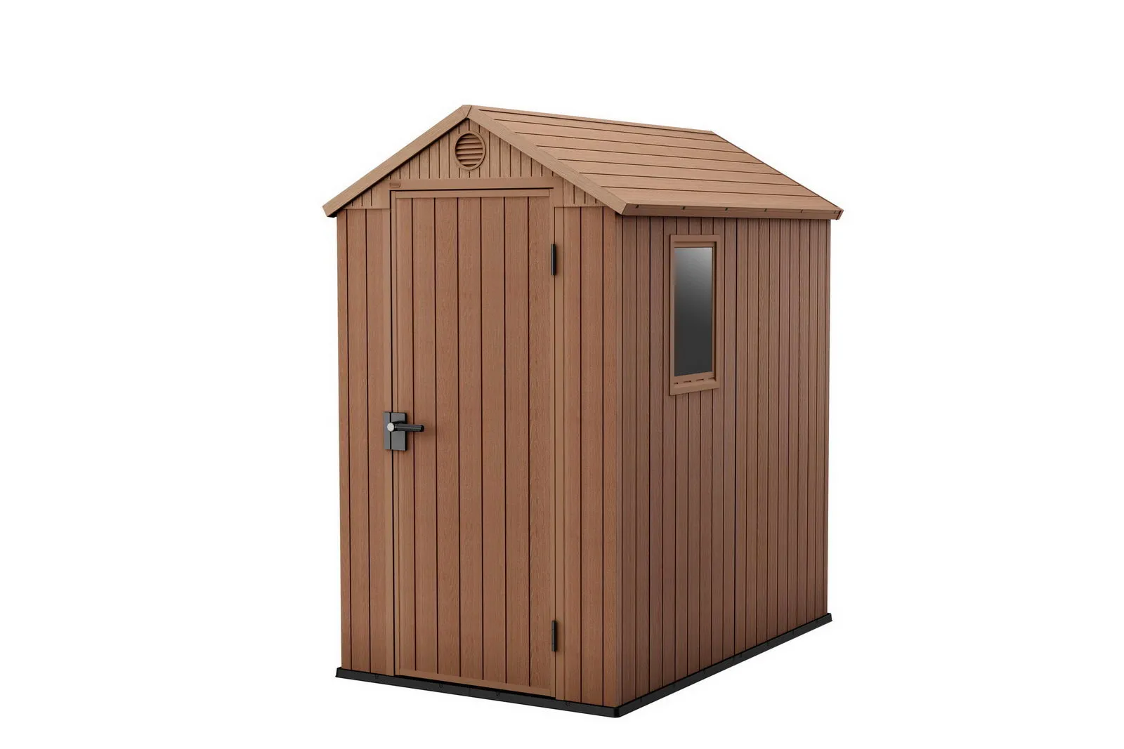 A Darwin mindennel rendelkezik, amivel egy kerti szerszámos háznak rendelkeznie kell. Az anyaga – bár kinézetében és tapintásában is valódi fára emlékeztet – olyan tulajdonságokkal bír, mely más anyaghoz nem hasonlítható. Az általunk kidolgozott kompozit EVOTECH™ anyagnak köszönhetően a Darwin ház nem szorul karbantartásra – nem rozsdásodik, nem hámlik, nem korhad. Speciális, kompakt módon csomagolt, ezért elfér az autó csomagtartójában is. A horonyillesztéses technikának köszönhetően az összeszerelés egyszerű – nincsen szükség semmilyen speciális szerszámra. Ez azt jelenti, hogy nem több, mint két óra alatt összeszerelheti a szerszámos házát, mely eredeti formájában sok éven keresztül fog szolgálni.