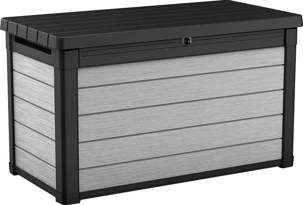A DUOTECH™ technológiával készült 570L-es Denali tároló a természetes fa esztétikájának és a polipropilén műanyag tartóságának ötvözete. A kiváló minőségű műanyagból készült termék eredményesen védi a benne tárolt tárgyakat nedvességtől, szennyeződésektől és az UV sugárzástól. A fedélnyitást megkönnyítő mechanizmus a termék vitathatatlan előnye. A letisztult stílusának köszönhetően a tároló illik a bármilyen típusú kerthez, legyen az akár klasszikus, vagy modern. A termék ellenáll az időjárás viszontagságainak, könnyű a tisztítása.