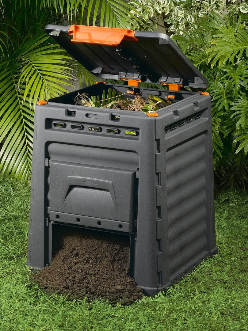 A 470L-es E-Composter kiváló megoldást jelent a háztartási és kerti hulladékok komposzttá alakításához. A stabilitás növelése céljából az oldalfalak csatlakozásának kialakítására nagy hangsúly került, ez a komposztáló megkérdőjelezhetetlen előnye. A termék újrafeldolgozásból származó, újrahasznosítható műanyagokból készült.