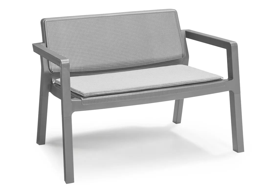 A bútorok ergonomikus kialakítása kényelmes pihenést biztosít – akár az ülőpárnák nélkül is. A szett 2 fotelt, egy kétszemélyes kanapét, a hozzájuk tartozó párnákat és egy kávézóasztalt tartalmaz. Elegáns, rácsos háttámla és ülőfelület, valamint tartós, könnyen karbantartható műanyag szerkezet jellemzi. Könnyen összeszerelhető szerszámok felhasználása nélkül – elég megfelelően elhelyezni az adott elemeket, mely csak 5 percet vesz igénybe, nincsen szükség semmilyen szerszámra! Ellenállnak a kedvezőtlen időjárási körülményeknek és az UV sugárzásnak, könnyen tisztíthatók.
