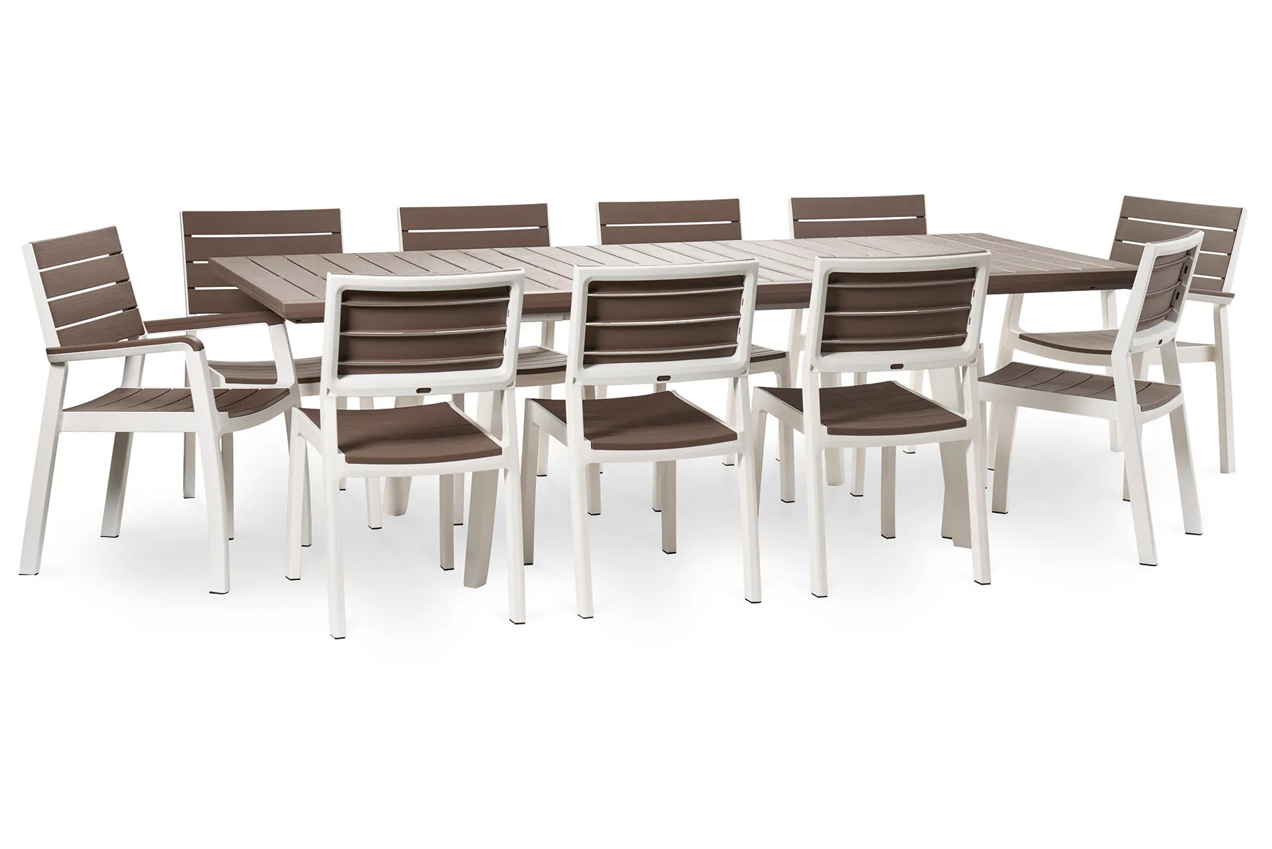 A Harmony Extendable egy kinyitható asztal, különleges feladatokra. Termékajánlatunk legnagyobb asztala időtálló stílussal és maximális használati kényelemmel büszkélkedik. Természetes faanyagra emlékeztető kivételes felületkialakítás jellemzi. A bútor ideálisan kitölti a kert vagy a terasz nagyobb tereit, lehetővé téve nagyobb családi összejövetelek vagy baráti találkozók szervezését. A széles asztallap 12 fő kényelmes fogadására alkalmas. A terméket magas tartósság jellemzi, továbbá ellenáll az időjárás viszontagságainak és az UV sugárzásnak is. Nagyon egyszerű összeszerelni és könnyű tisztán tartani.