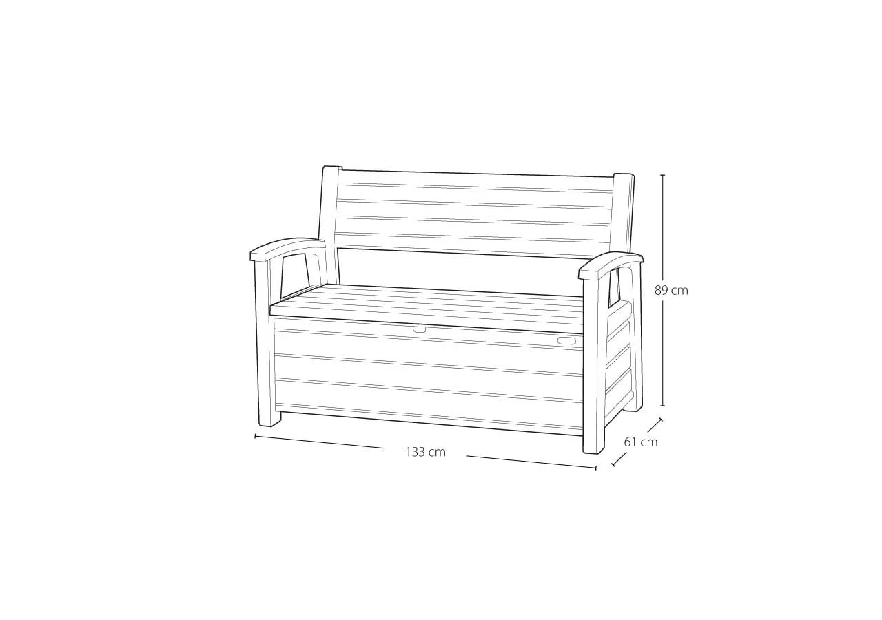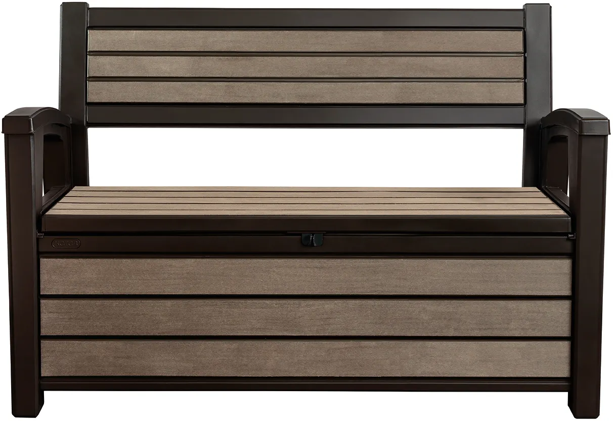 A Hudson egyben egy 2 személyes pad és funkcionális tároló, amely megtévesztően hasonlít a természetes fából gyártott tárolóhoz. A termék ellenáll az időjárás viszontagságainak, anyagának köszönhetően pedig könnyen tisztítható.