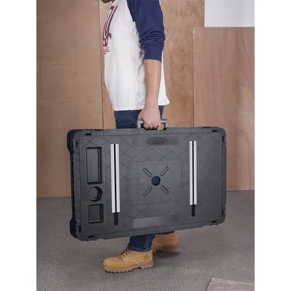 A Jobmade munkaasztal ideális választás profiknak és hobbi- barkácsolóknak egyaránt. 453 kg-os teherbírása lehetővé teszi, hogy szinte minden munkát el lehessen rajta végezni. Az asztal tartozéka még egy kivehető rendszerező is. Fogantyújának és könnyű súlyának köszönhetően egyszerűen szállítható. A lábaiban beépített stabilizátorok is helyet kaptak, melyek segítségével egyenetlen talajon is vízszintes lehet a felülete.