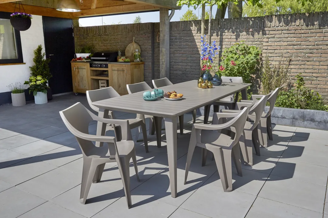 A Lima 240 és 320 funkcionális asztalok fő előnye az egyszerű, univerzális formájuk, melynek köszönhetően bármilyen stílusú térbe passzolnak, legyen az akár hagyományos, vagy modern kialakítású. A széles asztallap jól használható nagy családi lakomákhoz vagy baráti összejövetelekhez a kertben. Ezek az extra nagy asztalok akár 8-12 személyt is kiszolgálnak. Az asztal nagyon könnyen összeszerelhető és tisztítható; ellenáll a kedvezőtlen időjárási körülményeknek és az UV-sugaraknak is.