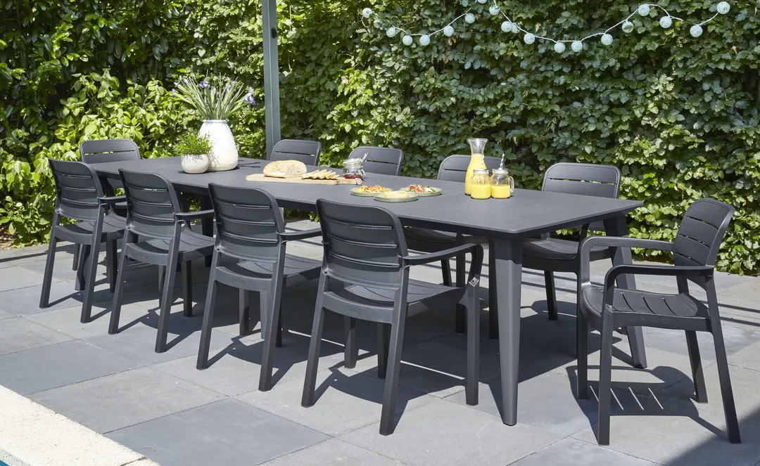 A Lima 240 és 320 funkcionális asztalok fő előnye az egyszerű, univerzális formájuk, melynek köszönhetően bármilyen stílusú térbe passzolnak, legyen az akár hagyományos, vagy modern kialakítású. A széles asztallap jól használható nagy családi lakomákhoz vagy baráti összejövetelekhez a kertben. Ezek az extra nagy asztalok akár 8-12 személyt is kiszolgálnak. Az asztal nagyon könnyen összeszerelhető és tisztítható; ellenáll a kedvezőtlen időjárási körülményeknek és az UV-sugaraknak is.