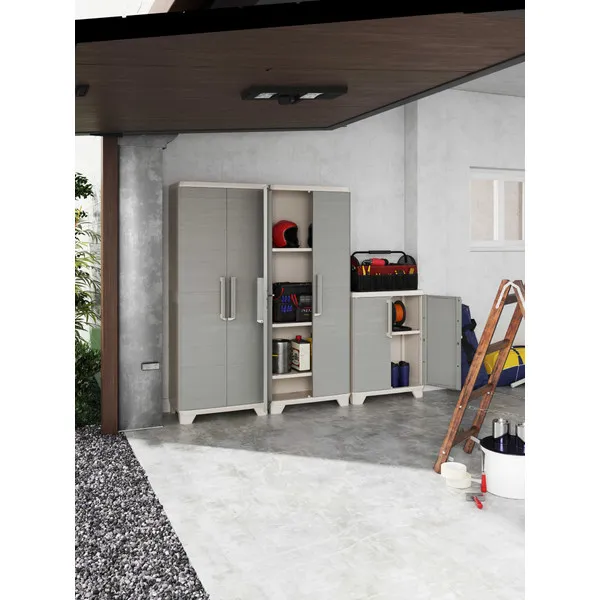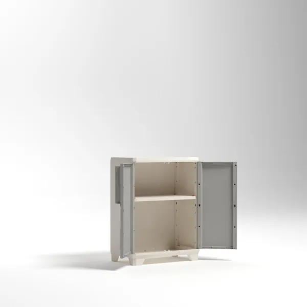Az állítható polc akár 15 kg teherbírású, így különböző méretű tárgyak elhelyezésére is alkalmas, biztosítva a praktikus és átlátható rendszerezést. A zárható fogantyúk gondoskodnak az extra biztonságról, míg az UV-ellenálló felület hosszú távú tartósságot garantál, megóvva a szekrényt az időjárás káros hatásaitól.