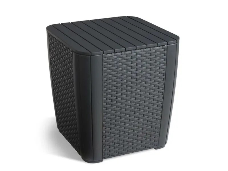 A Luzon asztal minden otthon tökéletes kiegészítője. A többfunkciós asztal beépített tárolóval még teljesebb és sokoldalúbb használatot biztosít az erkélyen, a kertben vagy a teraszon. Több szempontból is praktikus, a tároló funkciójának köszönhetően tarthatók benne kisebb tárgyak, de használható kisasztalként vagy dohányzóasztalként is, ha vendégek jönnek. 1 személy számára ülőhelyként is funkcionálhat. Nagyon könnyű összeszerelni. Ellenáll a kedvezőtlen időjárási körülményeknek és az UV-sugaraknak, könnyen tisztítható. 2 kivitelben kapható, melyeket különböző fonott rattan minták inspiráltak.