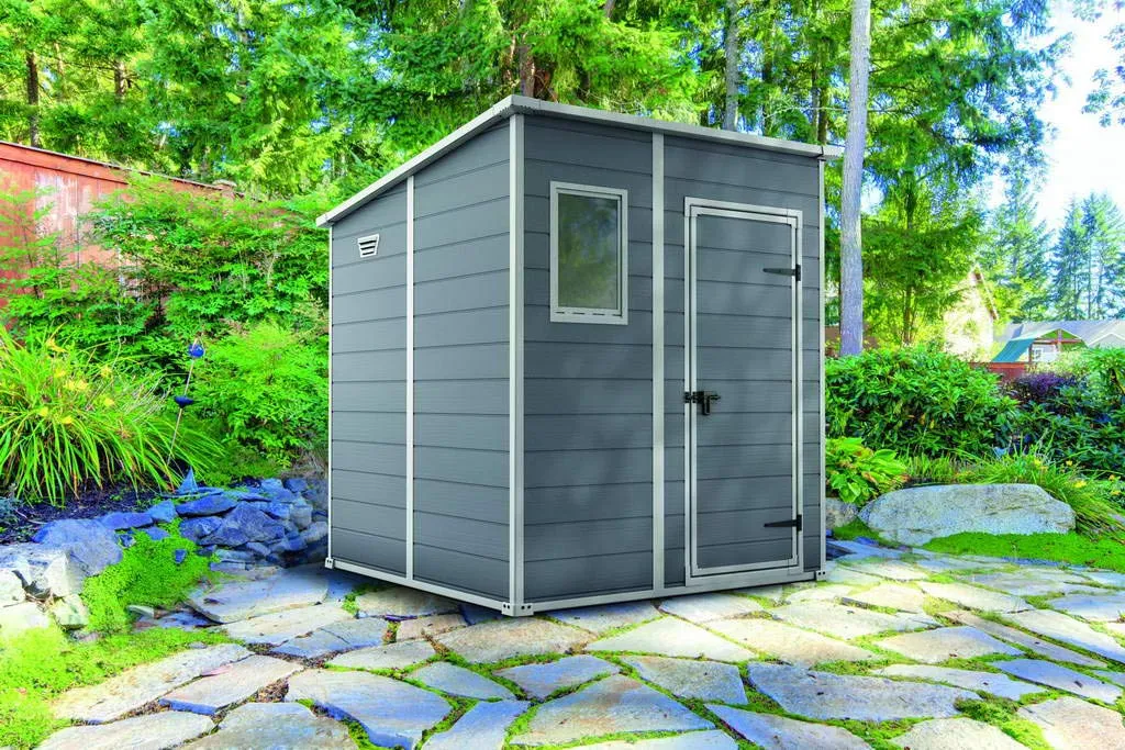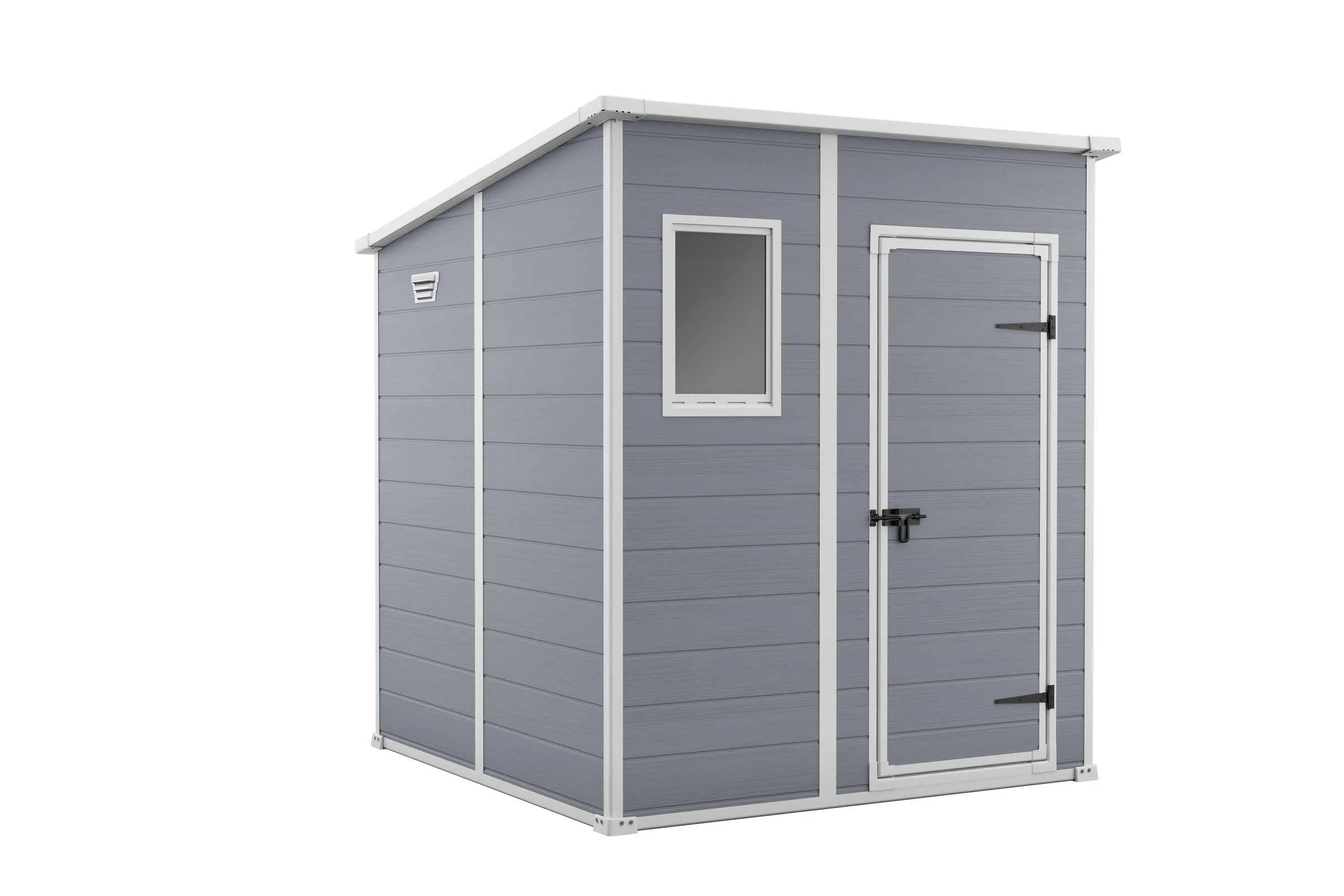 A 6×6-os Manor Pent szerszámos ház tökéletes megoldást nyújt, ha nagyobb hey kell a kert gondozásához szükséges kellékeknek. Nem igényel karbantartást. A dupla oldalfalak robusztus felépítése ellenállóvá teszi a házat a kedvezőtlen időjárási viszonyoknak, anyaga nem hámlik, nem rozsdásodik és nem rothad. A padlólemez jól véd a szennyeződések és a nedvesség ellen. A beépített ablak biztosítja a természetes fényt, megfelelő légáramlásról pedig szellőző gondoskodik. Az ajtó kialakításának köszönhetően könnyedén helyezhető rá lakat, ami biztonságosabbá teszi a tárgyak tárolását. A háztartásban megtalálható szerszámok segítségével egyszerűen összeszerelhető. Könnyű tisztán tartani. Az összecsomagolt termék kevés helyet foglal, így akár egy személyautóval is könnyedén hazaszállítható.
