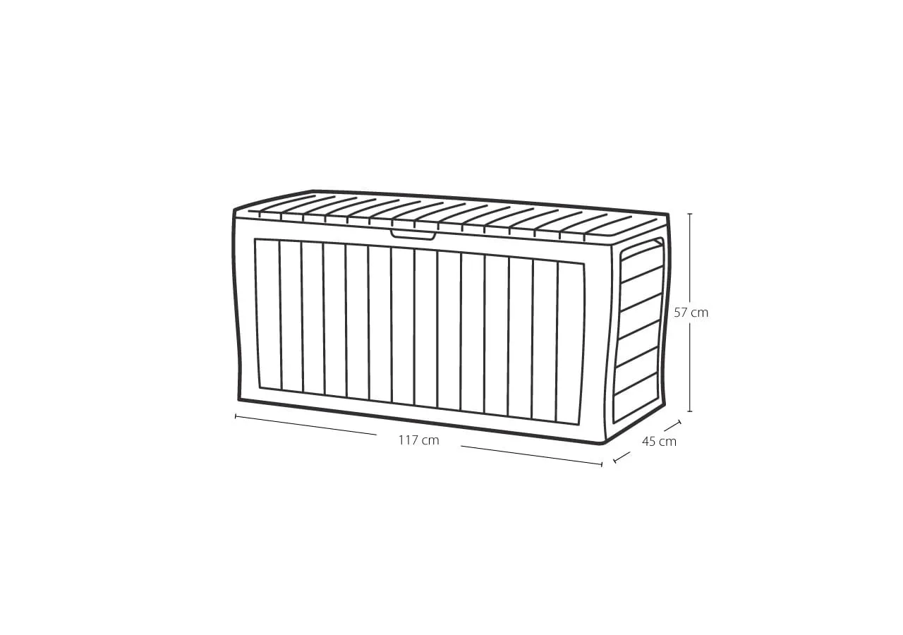 A Marvel Plus egy kivételesen tágas, 270 L-es kerti tároló nagyon hasznos funkciókkal. Kényelmes ülőhelyként szolgálhat akár 2 személy számára is, valamint kerti tartozékok, például locsolókannák, virágcserepek, párnák és apró kerti szerszámok tárolására is tökéletes. A tároló formatervezésének köszönhetően a klasszikus, valamint a modern kertbe is passzol. A termék ellenáll a kedvezőtlen időjárási feltételeknek és könnyű tisztán tartani.
