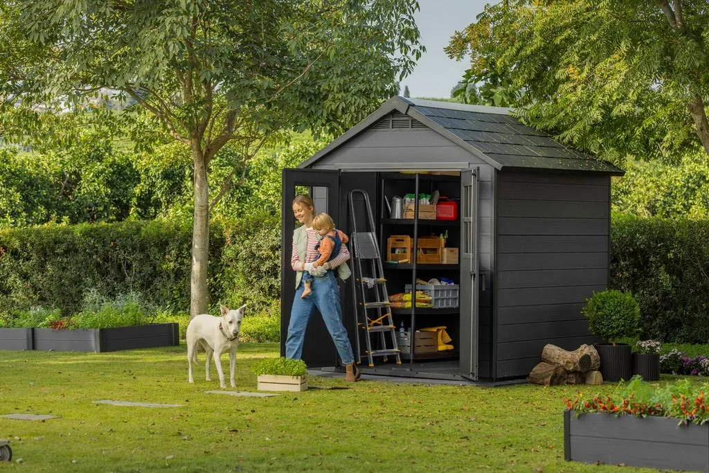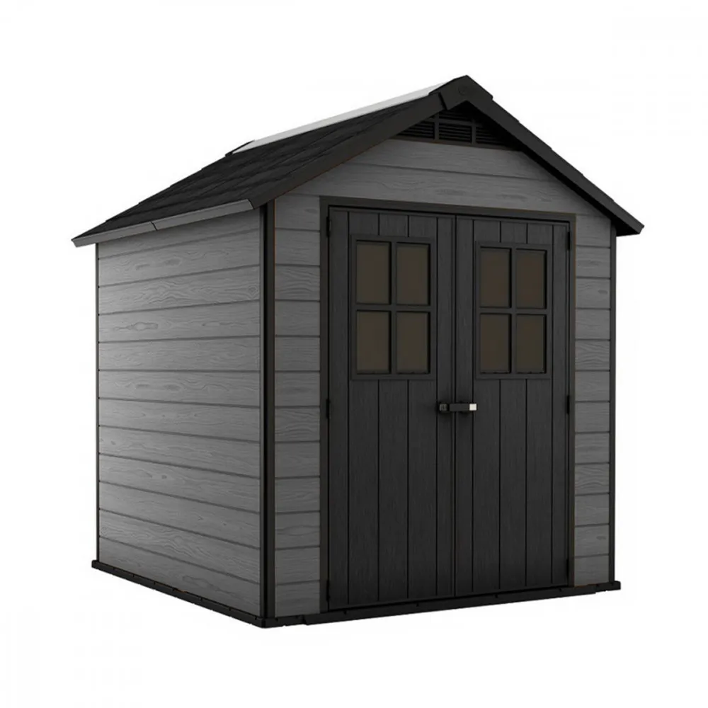 A nagyszerű kinézetű és rendkívül funkcionális Newton 757 szerszámos ház új sztenderdeket jelöl ki a kerti szerszámok tárolásában. A ház előnyei a finom design és a fa mintázatát imitáló külső felület, valamint a szerkezet rendkívüli tartóssága. A megerősített szerkezet ellenáll minden esőzésnek, szélnek és havazásnak. A padló probléma nélkül kibírja a fűnyíró súlyát és megóvja azt a sártól és az esőtől. Az egész ház hosszában beépített fénycső bármikor elegendő világítást, a beépített szellőző pedig megfelelő légmozgást biztosít. A Newton 757 a legkorszerűbb EVOTECH™+ anyagból készült panelekből kerül összeszerelésre. A tökéletesített kompozit, mely a fa eredeti külsejét imitálja, nem szorul karbantartásra.