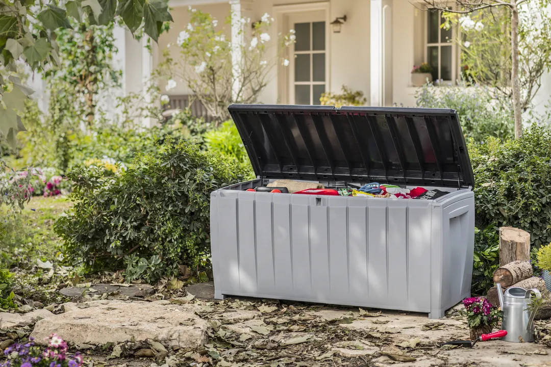 A 340L-es Novel tároló segít helyet találni a kerti eszközöknek. Gond nélkül elférnek benne az olyan kerti bútor kiegészítők, mint például párnák, pokrócok, lepedők, valamint a jóval nagyobb méretű tartozékok is, melyeket szeretnénk megvédeni a nedvesség és az egyéb légköri tényezők kedvezőtlen hatásától. A hagyományos stílusának köszönhetően a tároló könnyedén kombinálható a többi kerti bútorral. Szilárdságának és masszív kialakításának köszönhetően a tároló ülőhelyként is szolgálhat 2 felnőtt számára.