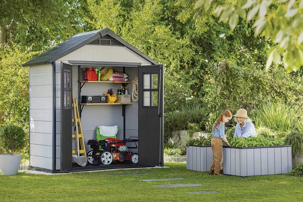 Az Oakland 754 szerszámos ház hatékony megoldást ad a sok tárgy korlátozott helyen való tárolásának problémájára. A nem túl nagy szélességének köszönhetően kevés helyet foglal, miközben ugyanannyira tartós és funkcionális, mint a nagyobb társai. Az időjárás viszontagságainak ellenálló DUOTECH™™ anyag – melyből a ház szerkezete készült – kinézetben és tapintásban igazi fát imitál, azzal a különbséggel, hogy a külső körülmények hatására nem hámlik, nem korhad és nem veszíti el a színét. A ház tartós padlólappal és két opcionálisan szerelhető polc (nem képezi a készlet részét) fogantyúval rendelkezik, valamint egy zárral az ajtóban, mely külön biztonságot nyújt. Az Oakland 754 tökéletes különböző tárgyak tárolására olyan helyeken, ahol kevés a tér: a teraszon, vagy egy kisebb kertben.