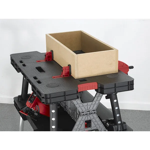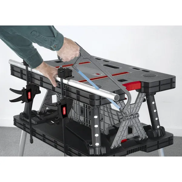Praktikus, összecsukható munkaasztal különböző körülmények között történő munkavégzéshez. Az akár 453 kg teherbírású, nagy felületű asztal megkönnyíti a munkavégzést. Tökéletes választás profik és hobbi-barkácsolók számára egyaránt, akik értékelik a praktikusságot és funkcionalitást. Kialakításának köszönhetően pár másodperc alatt összecsukható és kinyitható.