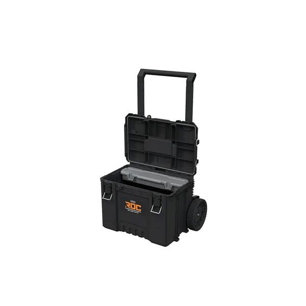 A ROC Pro Gear Rendszer tervezésekor egyenesen a végfelhasználókhoz fordultunk – akárcsak Te -, hogy lássuk, mit tudnánk fejleszteni, javítani, hogy egy professzionális szerszámosláda-rendszert alakíthassunk ki. A praktikus ROC Pro Gear rendszer olyan funkciókkal van felszerelve, amely alkalmassá teszi kinti munkaterületen vagy a műhelyben is. A ROC Pro Gear rendszer megkönnyíti az adott feladathoz szükséges felszerelés szállítását, köszönhetően a 23 cm átmérőjű kerekeknek és az alapegységek cserélhetőségének. Sokoldalú, praktikus és hatékony rendszer, Neked tervezve. A beépített megoldásoknak köszönhetően könnyen hozzáférhető és rendszerezett munkaterület tudsz létrehozni a Pro Mount függesztési rendszerrel; csak felakasztod és már dolgozhatsz is. A belső rendszerezők lehetővé teszik a felszerelés rendben tartását. A rendszer IP65 védettségi besorolású. A ROC Pro Gear egy profik által bevált innováció, amely a hozzád hasonló, igazi profik visszajelzéseire épül. Most minden eddiginél könnyebb a szerszámosládát a teherautó platójára pakolni. Az új Pro Gear Cart segítségével, amely teljesen levehető keréktárcsával és teleszkópos fogantyúval rendelkezik, az XL szerszámosládát teljesen leválaszthatod a kerekekkel ellátott teleszkópos fogantyúról a könnyebb szállítás érdekében. Az alapegységét is néhány másodperc alatt kicserélheted. Ez az egység 22 cm-es kerekekkel és a KETER ROC Pro Gear 2.0 XL szerszámosládák közötti Attach-and-Detach kompatibilitással rendelkezik.