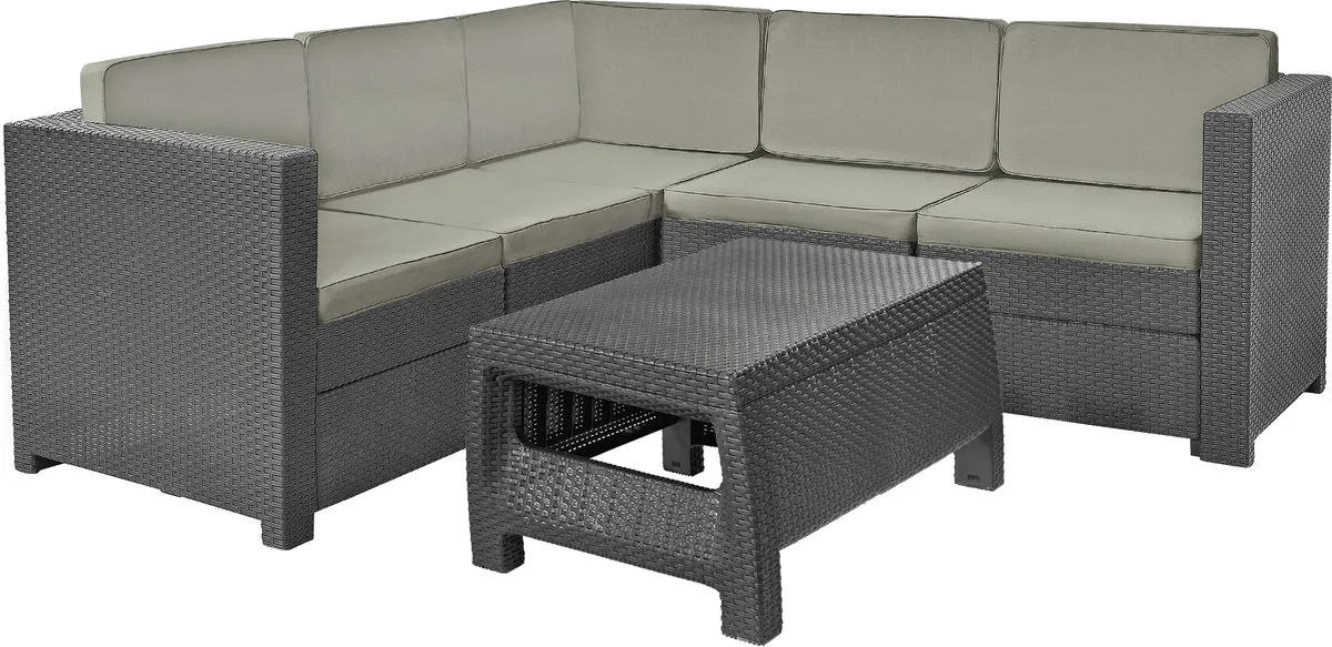 A különleges és nagyon mutatós Provence szett egy sarokkanapét és egy kávézóasztalt tartalmaz. A bútorok természetes megjelenésüket a rattan hatású anyagnak köszönhetik. A bútorok felülete ellenálló a nedvességgel és az UV sugárzással szemben, ami hosszú élettartamot garantál. A Provence szett tökéletesen mutat minden kertben és teraszon.