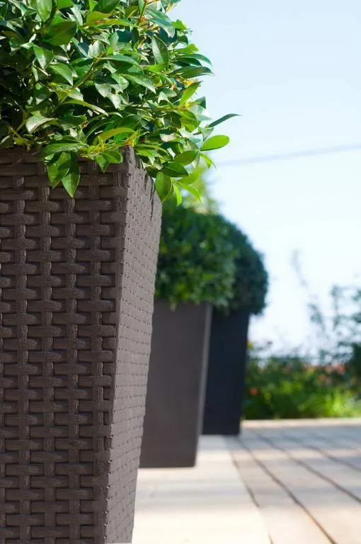 A közepes méretű, négyszögletes Medium Rattan Planter virágtartó természetes fonott rattanra emlékeztető mintázata remekül kiemeli a növények szépségét a teraszon, az erkélyen, vagy akár a belső térben is. A klasszikus színskála és az univerzális kialakítás remekül feldobja az adott helyet, a stílustól függetlenül. A modern és stabil szerkezet hosszú évekre garantálja a tartósságot.