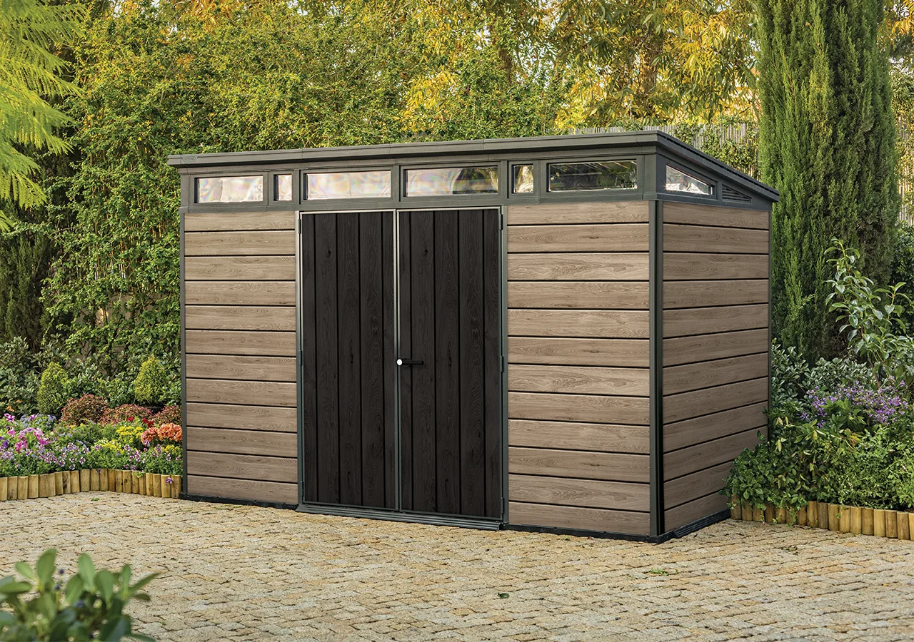 A Signature kollekció egy stílusos, modern kerti házakból álló kollekció, amely lehetővé teszi, hogy különböző textúrák és modellek közül válassz, hogy egyedi tároló megoldást alakíthass ki a kertedben. Egyikük, a rendkívül tágas PENTHOUSE 11X7 minden tekintetben modern. Az ablakok felett ferde tetővel, és számos más elegáns kialakítással büszkélkedhet, és a barkács szerszámoktól kezdve a nagyméretű kültéri sporteszközökig, motoros felszerelésekig mindent tökéletesen tárol. A PENTHOUSE 11X7 SIGNATURE COLLECTION az egyedülálló DECOCOAT technológiával készült, amely amellett, hogy időjárásálló, minden más technológiánál jobban díszíti a kültéri környezetet és megfelel a legújabb dizájn trendeknek. A DECOCOAT “Akár a valódi fa, de jobb” technológia a műanyag előnyeit kínálja esztétikus külsővel. Ez a rendkívül modern és strapabíró kerti ház teljesen időjárásálló és karbantartásmentes – nem rozsdásodik, nem szívja magába a vizet, nem válik fel a felülete