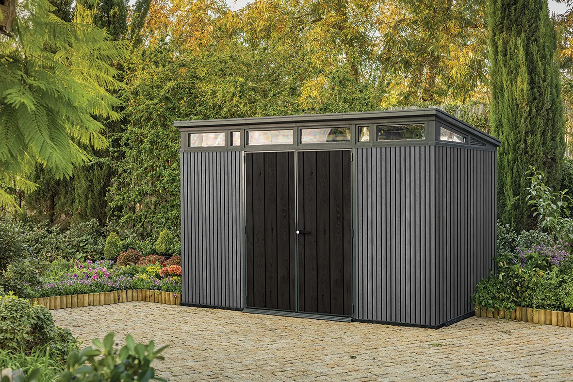 A Signature kollekció egy stílusos, modern kerti házakból álló kollekció, amely lehetővé teszi, hogy különböző textúrák és modellek közül válassz, hogy egyedi tároló megoldást alakíthass ki a kertedben. Egyikük, a rendkívül tágas PENTHOUSE 11X7 minden tekintetben modern. Az ablakok felett ferde tetővel, és számos más elegáns kialakítással büszkélkedhet, és a barkács szerszámoktól kezdve a nagyméretű kültéri sporteszközökig, motoros felszerelésekig mindent tökéletesen tárol. A PENTHOUSE 11X7 SIGNATURE COLLECTION az egyedülálló DECOCOAT technológiával készült, amely amellett, hogy időjárásálló, minden más technológiánál jobban díszíti a kültéri környezetet és megfelel a legújabb dizájn trendeknek. A DECOCOAT “Akár a valódi fa, de jobb” technológia a műanyag előnyeit kínálja esztétikus külsővel. Ez a rendkívül modern és strapabíró kerti ház teljesen időjárásálló és karbantartásmentes – nem rozsdásodik, nem szívja magába a vizet, nem válik fel a felülete