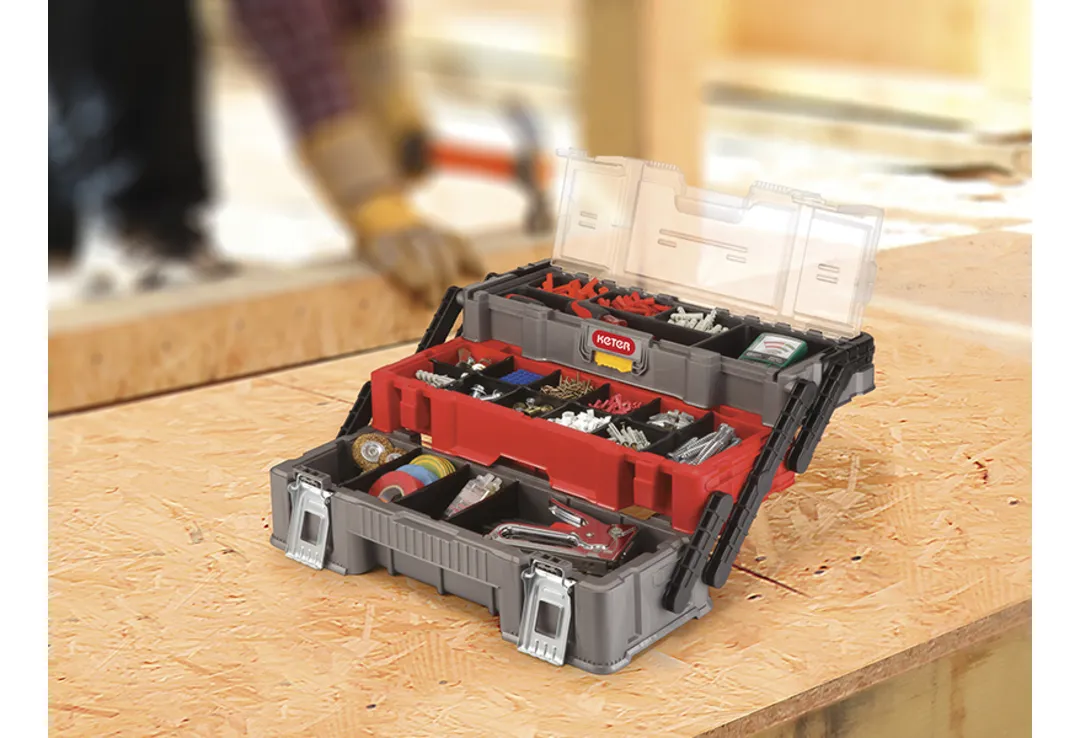 Rendszerezd az apró alkatrészeket és szerszámokat a legegyszerűbb módon a praktikus és könnyű Canti Trio szerszámosládával! Profik és hobbi-barkácsolók számára is tökéletes, szállítása egyszerű a széles, fém fogantyú segítségével. Több szintes kialakítása segít, hogy bármihez könnyedén hozzáférj, átlátszó polikarbonát tetején keresztül pedig mindig látható a felső szint tartalma. A szerszámosláda biztonságos záródásáról fém csatok gondoskodnak, így a benne tárolt eszközök mindig biztonságban lesznek.