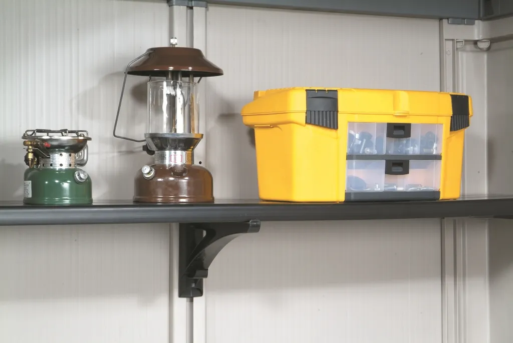 Nagyon praktikus kiegészítő készlet a Keter Factor szerszámos házakhoz. A készletben 4 polc, 2 szerszámos kampó és kettő polcfogantyú található. A Factor 8×11, 8×8, 8×6 és 6×6 házakhoz használható.