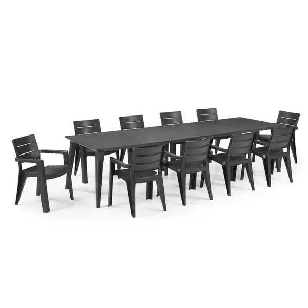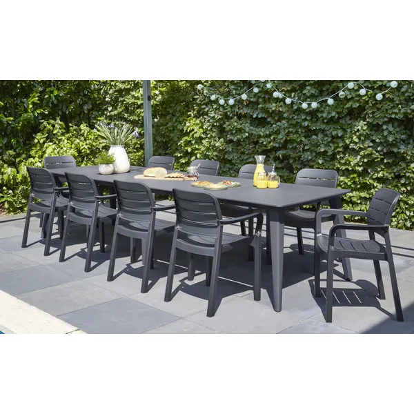 A Lima 240 és 320 funkcionális asztalok fő előnye az egyszerű, univerzális formájuk, melynek köszönhetően bármilyen stílusú térbe passzolnak, legyen az akár hagyományos, vagy modern kialakítású. A széles asztallap jól használható nagy családi lakomákhoz vagy baráti összejövetelekhez a kertben. Ezek az extra nagy asztalok akár 8-12 személyt is kiszolgálnak. Az asztal nagyon könnyen összeszerelhető és tisztítható; ellenáll a kedvezőtlen időjárási körülményeknek és az UV-sugaraknak is.