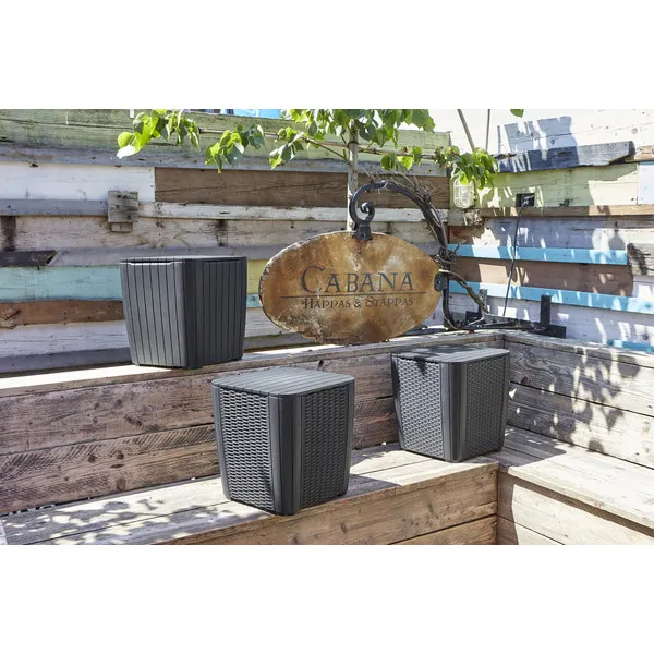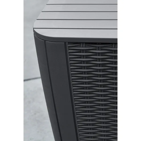 A Luzon asztal minden otthon tökéletes kiegészítője. A többfunkciós asztal beépített tárolóval még teljesebb és sokoldalúbb használatot biztosít az erkélyen, a kertben vagy a teraszon. Több szempontból is praktikus, a tároló funkciójának köszönhetően tarthatók benne kisebb tárgyak, de használható kisasztalként vagy dohányzóasztalként is, ha vendégek jönnek. 1 személy számára ülőhelyként is funkcionálhat. Nagyon könnyű összeszerelni. Ellenáll a kedvezőtlen időjárási körülményeknek és az UV-sugaraknak, könnyen tisztítható. 2 kivitelben kapható, melyeket különböző fonott rattan minták inspiráltak.