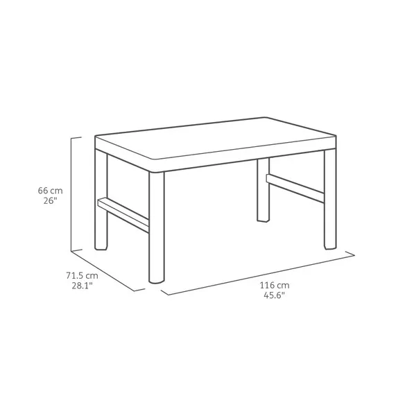 A két pozícióban állítható magasságú Lyon asztal kivételesen funkcionális megoldást nyújt, kialakítása lehetővé teszi a felhasználók szükségleteinek megfelelő magasság beállítását. A szerkezet lehetővé teszi az asztal 2 verzióban történő használatát: alacsony (kávézóasztal), vagy az étkezéshez kiváló, magas (étkezőasztal) verzióban. Egyszerű kialakítású, komfortos használatú és könnyedén összeszerelhető. Ellenáll az időjárás viszontagságainak és az UV sugárzásnak is.