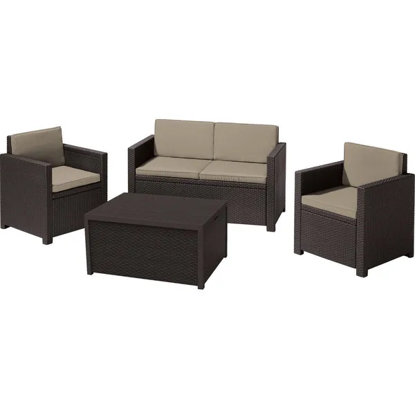A Monaco egy kényelmes és elegáns kerti bútor szett két fotellel, egy kanapéval és egy tároló funkcióval rendelkező négyszögletes asztallal. A bútorok fő előnyei a rattan hatású felület és a fotelek, valamint a kanapé kényelmes ülőrészei. A tartós anyagból készült bútor ellenáll az időjárás viszontagságainak és az UV sugárzásnak is.