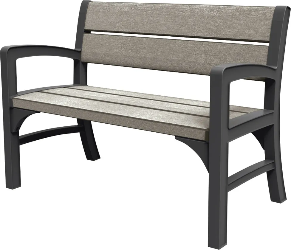 A kényelmes háttámla és a fa hatású elemek a kétszemélyes Montero pad legfőbb előnyei közé sorolhatók. A termék kivitelezése igen érdekes, a természetes fára hasonlít, viszont műanyagból készül, így ellenáll az időjárás viszontagságainak. Tökéletesen kiegészíti a kertet, a termékcsalád többi termékével szépen kombinálható.